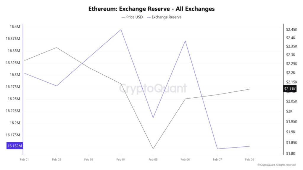On-chain data shows Ethereum reserves on exchanges reduced by more than 200K ETH. This decrease signals the movement of assets from trading platforms to personal wallets. Similar patterns often appear when large players anticipate certain price movements.