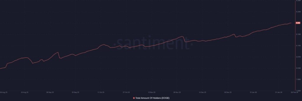 The number of Dogecoin holders jumped significantly, increasing by about 8.2 million addresses. This upward trend has been steady and consistent despite recent market volatility.
