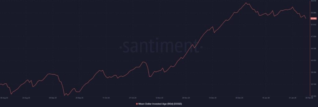 The price drop makes DOGE now cheaper to buy at the current trading price. At the same time, on-chain signals show that holders are not rushing to exit their positions. Instead, the market sentiment looks quite stable.