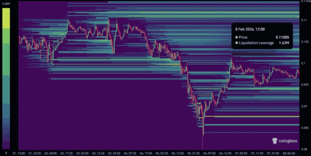 Liquidation Heatmap data shows that there is a sizable liquidity cluster, around $1.63 million, in the $0.11 price area. This level is one of the important price targets in the short term as the market tends to gravitate towards this zone.
