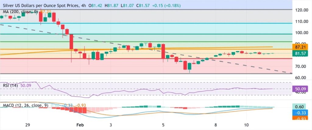 The XAG/USD initial support level is currently around 81.50 US per ounce. A drop below this support could open the risk of deeper pressure to the US 80.50-80.00 zone. Traders considering short positions usually monitor a breakout below this support as a signal of continued bearishness.