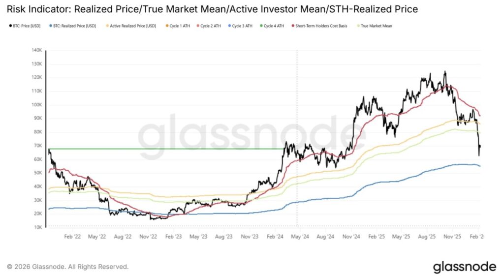 On-chain analytics platform Glassnode highlighted the structural weakness in Bitcoin amid macroeconomic pressures. The current price movement of BTC is likely to be defensive in the range of $60,000-$72,000, with the possibility of the price collapsing to touch the “realized price” around $55,000.
