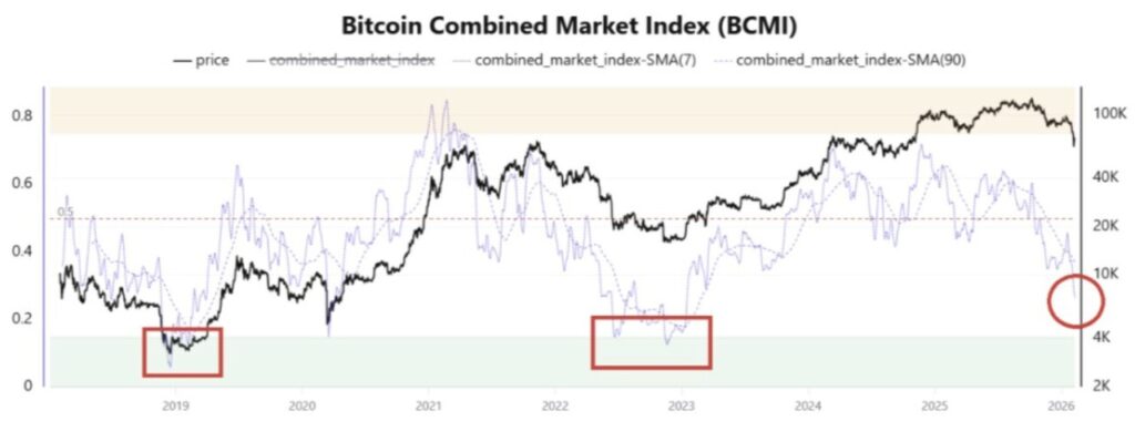 CryptoQuant’s Bitcoin Combined Market Index (BCMI) metric is increasingly indicating a transition into a deeper bear market phase, rather than just a short correction. “From a cyclical perspective, a true bottom is likely still ahead,” said a CryptoQuant analyst.