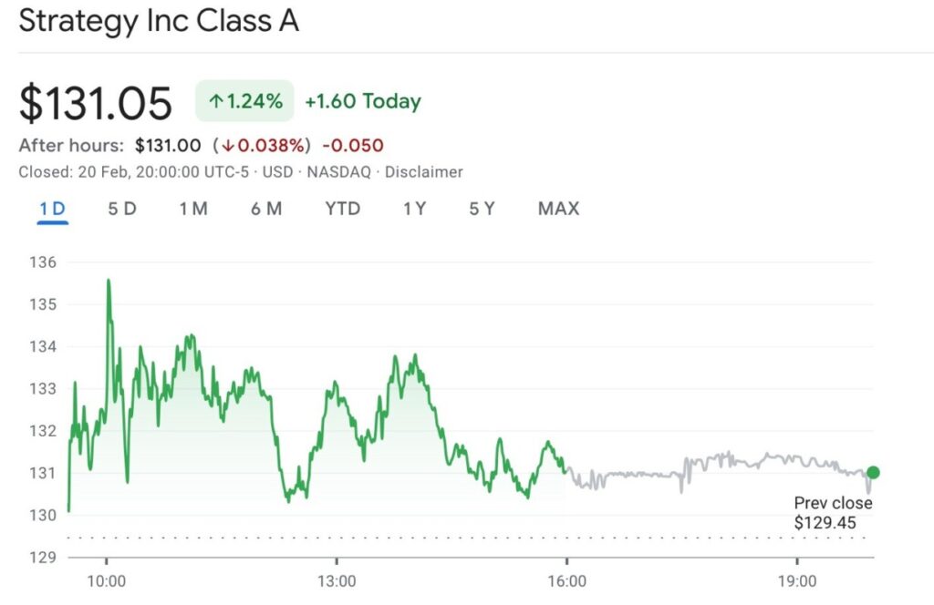 During February, the price of Bitcoin (BTC) came under pressure despite recording a slight daily increase of 0.15%. On the other hand, MicroStrategy (MSTR) shares actually recorded a 1.24% increase in Friday’s trading session, with transaction volume reaching 17.6 million shares. MSTR’s share price moved in the range of $129.41 to $136.14, and after trading hours, the price stayed around $131.
