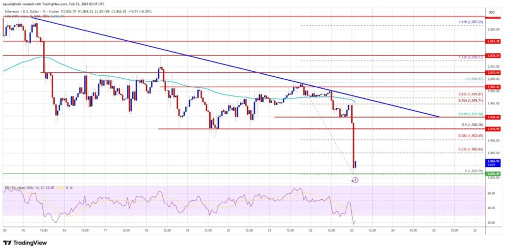 The price of Ethereum (ETH) has seen a significant fall to the lower limit of IDR 31,133,650 ($1,850) in recent trading. You can see that this selling pressure came after the crypto asset failed to maintain its position above the uptrend line that had been forming for several weeks. Market analysts noted that there were very high trading volumes when the price breakout occurred, signaling short-term panic among cryptocurrency holders.