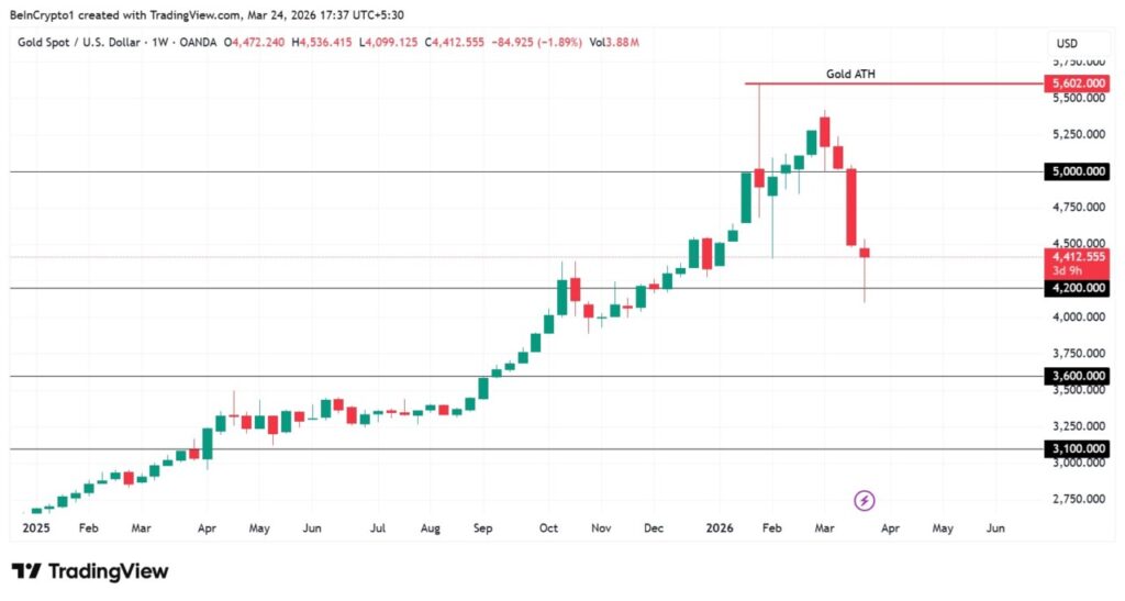 In an interview with BeInCrypto, Dudchenko predicted that the price of gold could fall to $3,100, although the drop is still considered a correction after a 65% price surge in 2025. This phenomenon raises a big question among investors as to when is the best time to re-enter the gold market.