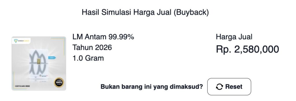 Gambar Antam Gold Buyback Price Today, Thursday, March 26, 2026