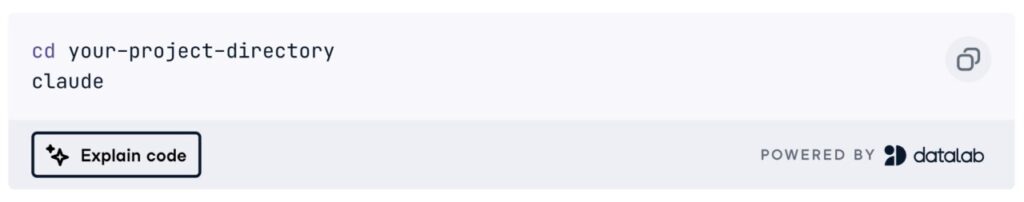 • Once the installation is complete, navigate to your project directory, then run Claude Code through the terminal to get started.