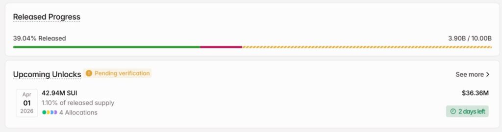 Sui will unlock on April 1 with a total of 42.94 million tokens. The value is estimated at $36.36 million or around Rp618 billion. This unlock is part of a pre-planned monthly schedule.