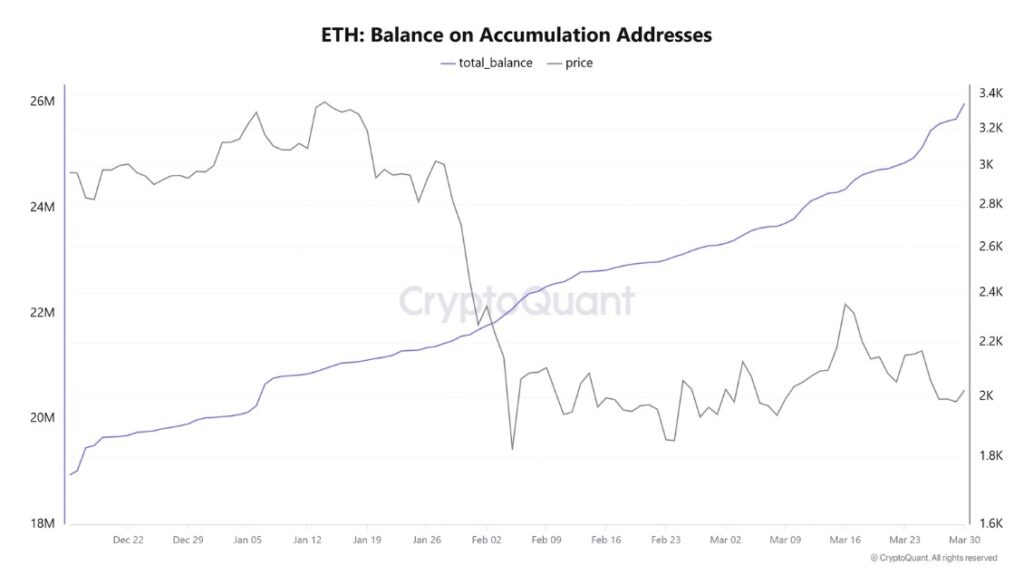 In March, ETH accumulation addresses – wallets with no sales history – were particularly active, accumulating around 2.7 million ETH. This was the largest monthly increase in over a year.