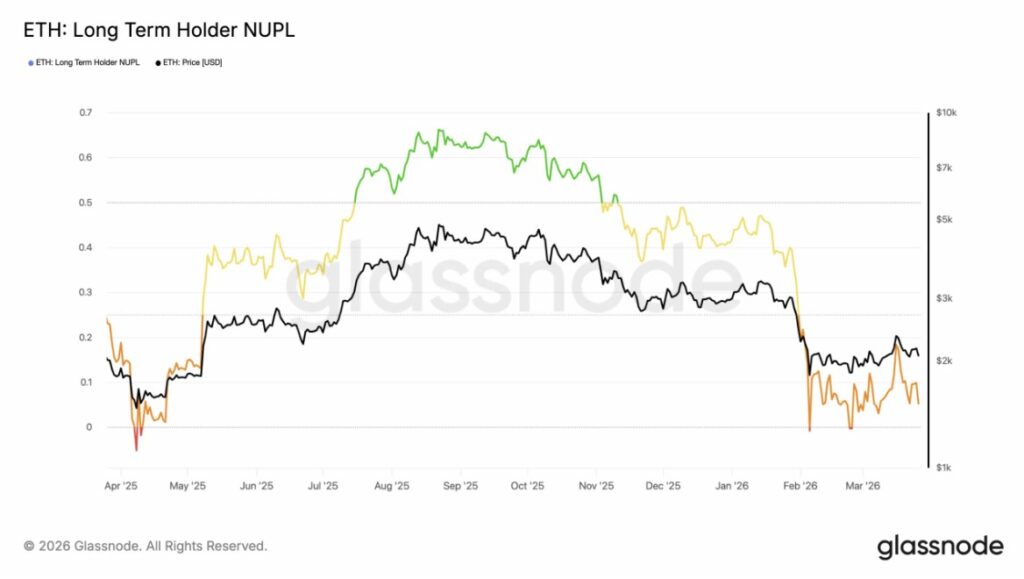 If all four charts are read together, the picture that emerges is quite consistent. Ethereum’s on-chain metrics are currently in deep capitulation territory: The NUPL of long-term holders is close to zero.