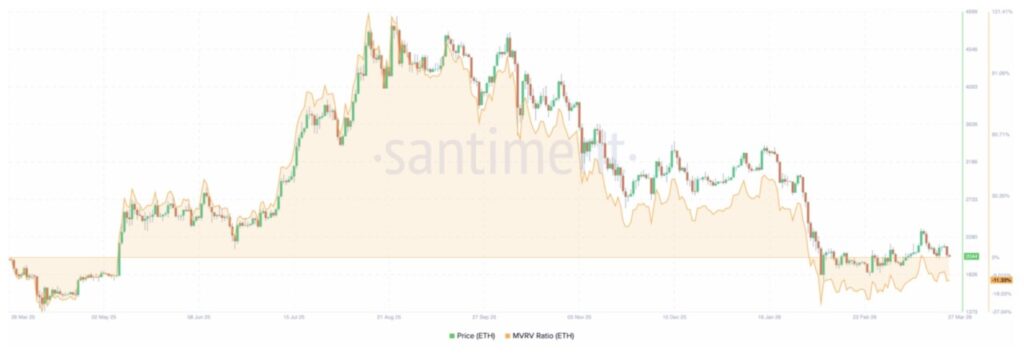 Currently, the MVRV is at -11.33%. This means that the metric is still in the negative zone. In other words, the average ETH holder still bears an unrealized loss of more than 11%.