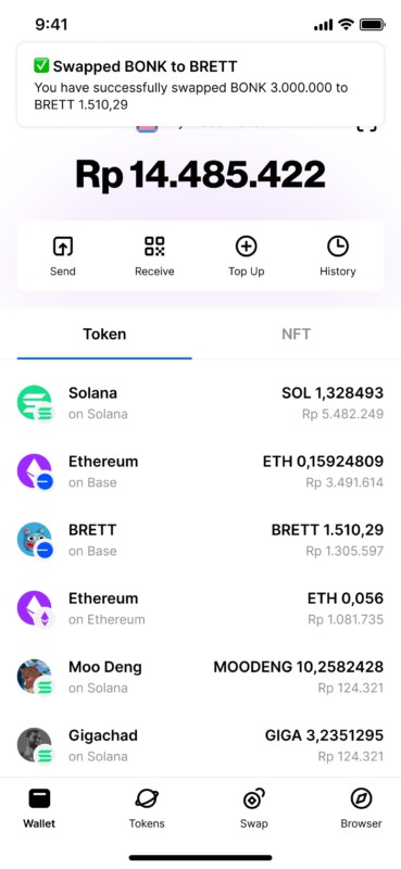 In addition to swaps within the same blockchain, Pintu Web3 also offers a Cross-Chain Swap feature, allowing users to swap tokens across different blockchains in a single, seamless step—without ever leaving their wallet.