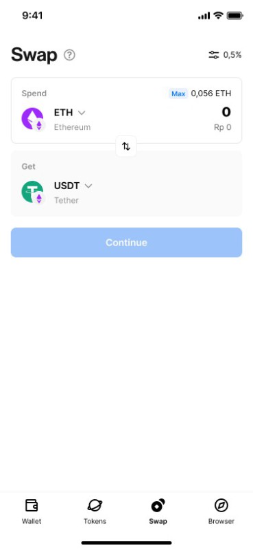Review the token selection and amount to ensure everything is correct, then tap ‘Continue’ to proceed