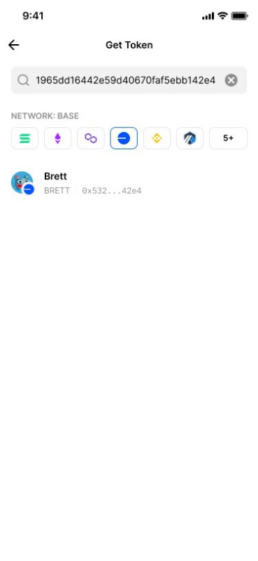 Once you select the token to swap (e.g., BONK on Solana), search for the token you want to receive ‘Get‘ (e.g., Brett on Base) either by name, ticker, or contract address, then click its logo