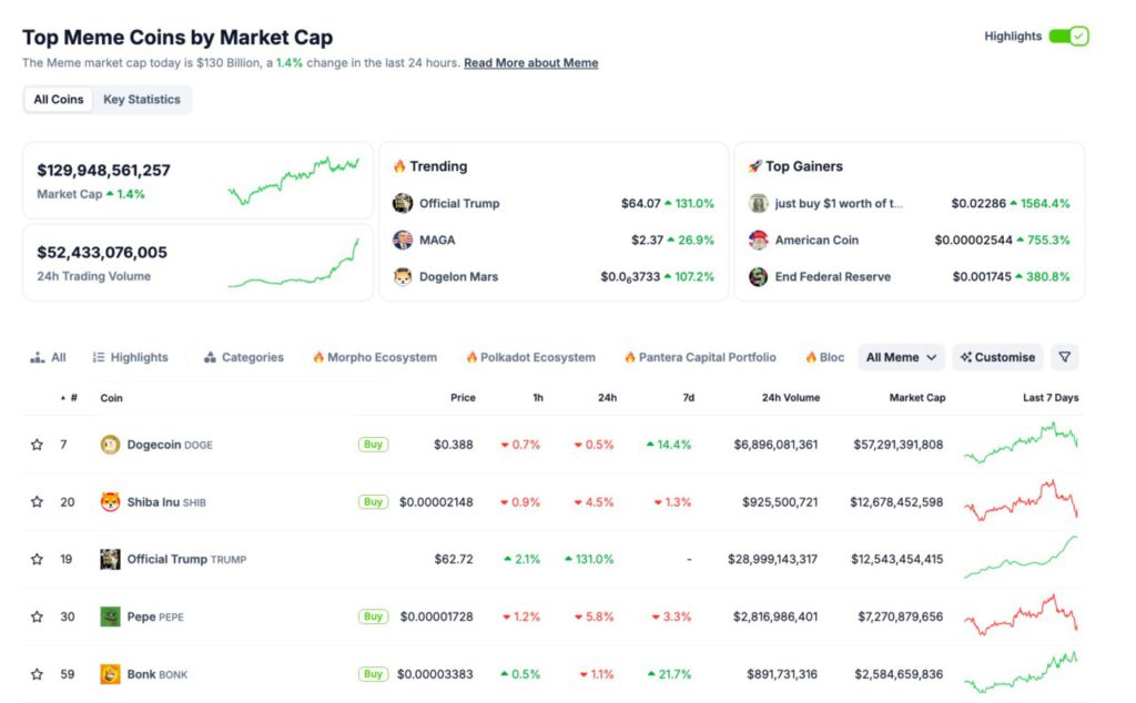 Pasar memecoin secara keseluruhan tumbuh 1,4% dengan total kapitalisasi $130 miliar (Rp2.127 triliun). Namun, token lama seperti Dogecoin , Pepe , dan SHIB mencatat kerugian, dengan SHIB kehilangan kapitalisasi pasar senilai $700 juta (Rp11,5 triliun). Perubahan ini mencerminkan pergeseran perhatian investor ke token baru yang berbasis narasi.