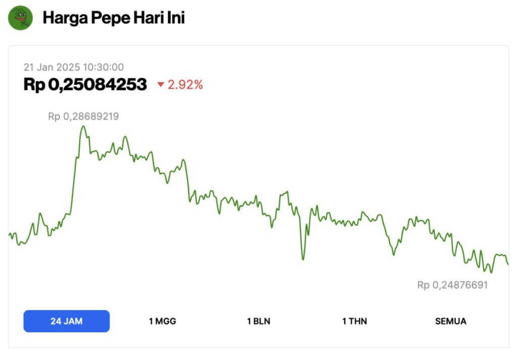 Harga Pepe Coin Melemah 2% Hari Ini (21/1/25): Apa yang Terjadi?