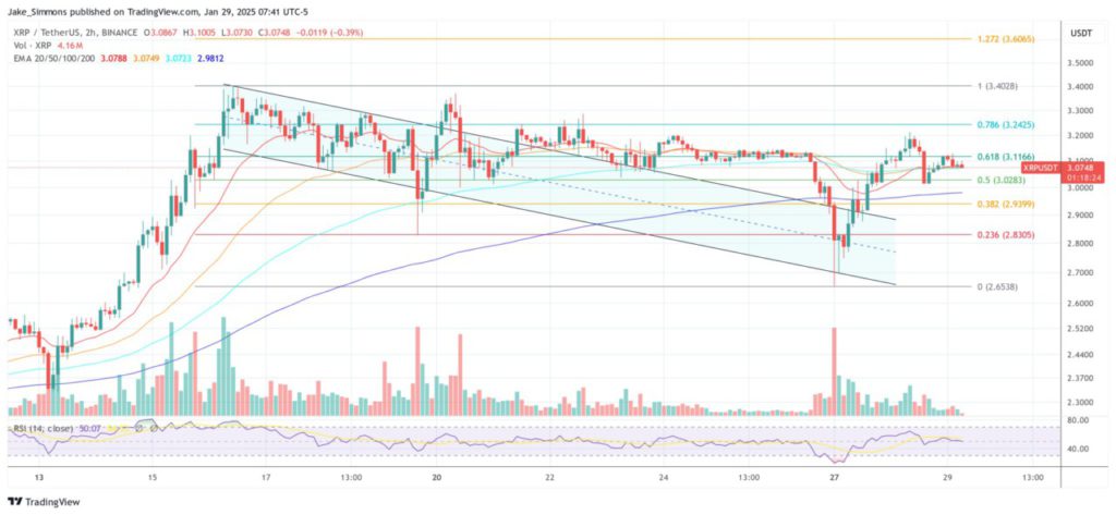 Kenaikan XRP dimulai dari di bawah Rp8.123 ($0.50) pada November dan terus menguat hingga Desember, di mana harganya mencapai Rp32.492 ($2.00) sebelum memasuki fase konsolidasi. Pada pertengahan Januari, XRP berhasil menembus level Rp48.738 ($3.00), mencapai puncak di sekitar Rp51.987 ($3.20) sebelum mengalami koreksi kecil.