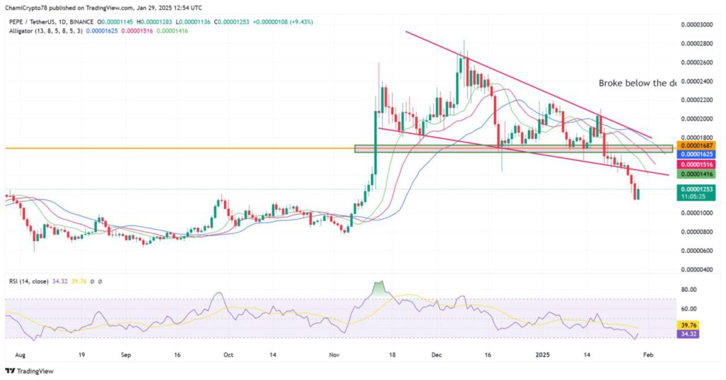 Jakarta, Pintu News – Pepe mengalami penurunan besar dalam 40 hari terakhir, dengan kapitalisasi pasarnya merosot hingga Rp114 triliun. Beberapa bulan lalu, valuasi PEPE masih berada di sekitar Rp195 triliun, tetapi kini hanya tersisa Rp85,2 triliun. Anjloknya kapitalisasi pasar ini mencerminkan berkurangnya kepercayaan investor terhadap prospek jangka panjang memecoin ini.