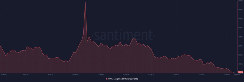 Meskipun harga berada dalam tren menurun, data on-chain menunjukkan beberapa indikasi campuran terkait kekuatan fundamental PEPE.