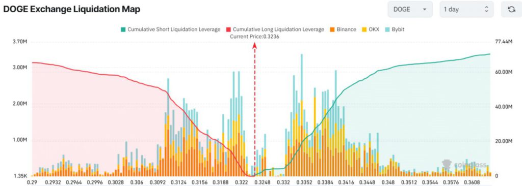 Jika harga DOGE mencapai zona likuidasi utama, maka kemungkinan akan terjadi volatilitas tinggi, tergantung pada sentimen pasar dan arah pergerakan harga.