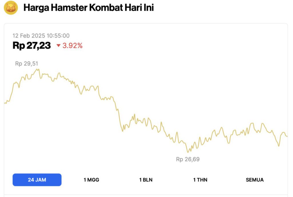 Sejalan dengan ketiga memecoin tersebut, harga Hamster Kombat (HMSTR) juga tercatat mengalami koreksi sebesar 3,92% dalam periode waktu yang sama. HMSTR sempat menyentuh harga terendahnya di Rp26,69 dan harga tertingginya di Rp29,51.