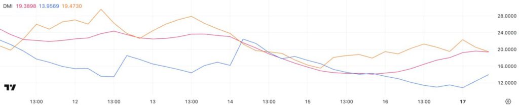 Grafik DMI HBAR menunjukkan bahwa ADX telah naik menjadi 19,3 dari 14,2 dalam dua hari terakhir, menandakan penguatan tren. Karena ADX masih di bawah 20 namun meningkat, ini menunjukkan bahwa tren penurunan Hedera mungkin stabil, meskipun belum mengonfirmasi pergerakan arah yang kuat.