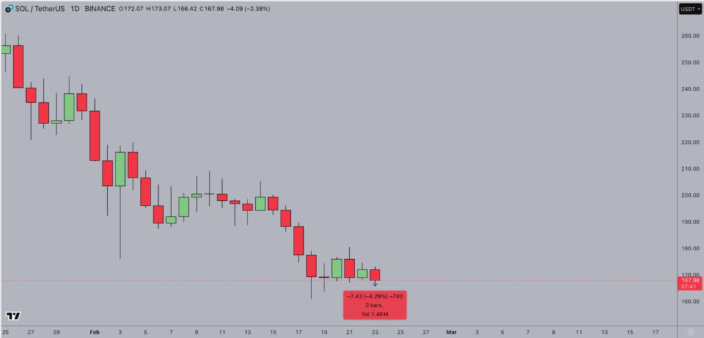Kekhawatiran ini diperparah dengan posisi harga Solana (SOL) yang saat ini berada di bawah titik terendah sebelumnya. Analisis teknis menunjukkan bahwa jika tekanan jual terus berlanjut, ada kemungkinan harga akan menembus batas bawah $150. Situasi ini membutuhkan pengawasan ketat dari para investor dan analis pasar untuk mengantisipasi pergerakan selanjutnya.