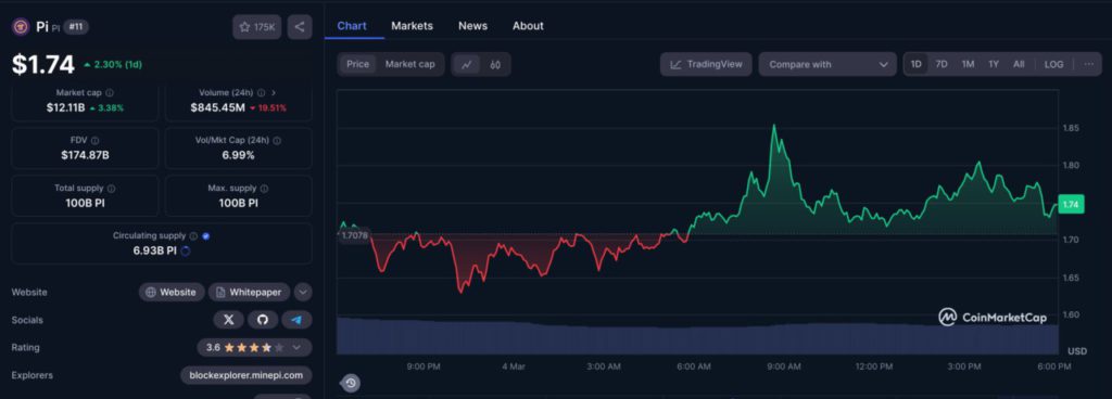 Jakarta, Pintu News ā Pi Network (PI), salah satu cryptocurrency yang dapat ditambang melalui perangkat seluler, mengalami lonjakan harga yang signifikan meskipun pasar crypto secara umum mengalami tekanan. Penyebab utama kenaikan ini adalah tercantumnya Pi Coin di CoinMarketCap serta meningkatnya aktivitas investor menjelang batas waktu migrasi yang ditetapkan.