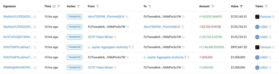 Menurut data dari Lookonchain, tiga whale telah melakukan pembelian besar-besaran pada FARTCOIN, dengan total investasi mencapai $5,6 juta. Aksi ini telah memberikan dorongan kuat pada harga FARTCOIN di pasar. Whale, sebagai pemain kunci dalam ekosistem cryptocurrency, seringkali memiliki pengaruh yang signifikan terhadap pergerakan harga. Karena itu, aktivitas mereka selalu menjadi sorotan bagi investor lainnya.