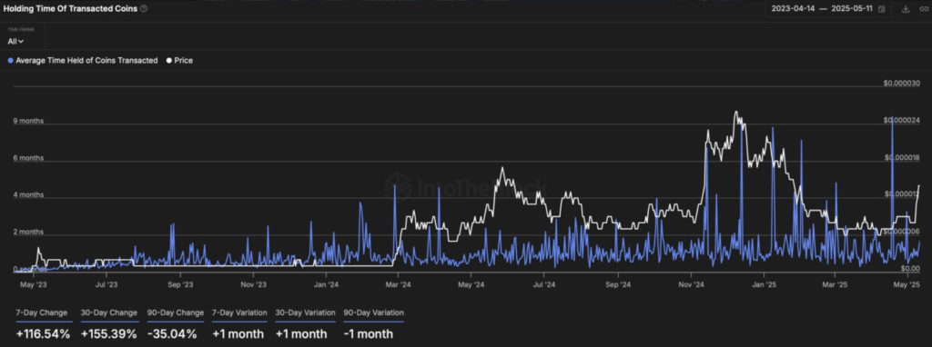 Lonjakan terbaru harga PEPE mencerminkan tarik-menarik jangka pendek antara para trader yang mengambil untung dan pemegang jangka panjang.