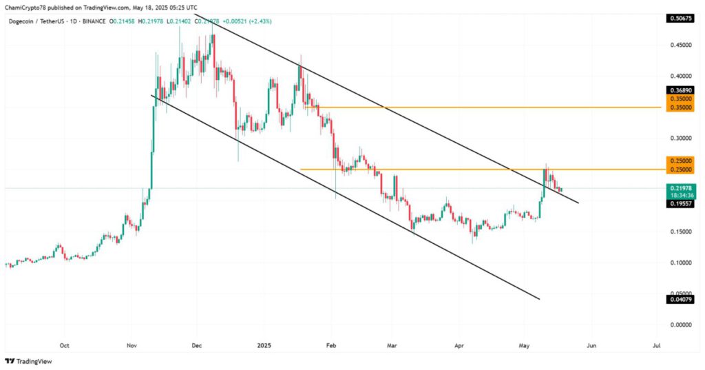 Jakarta, Pintu News – Dogecoin kembali menguji level kunci saat para peminatnya berusaha menembus resistensi $0,25. Dengan data likuidasi yang menunjukkan dominasi pembelian dan beberapa indikator on-chain yang mendukung, peluang Dogecoin (DOGE) untuk melampaui harga tersebut tampaknya semakin terbuka.