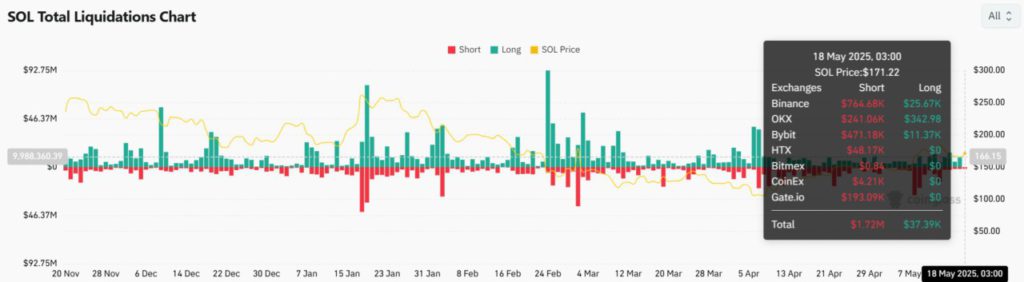 Data likuidasi on-chain menunjukkan adanya kecenderungan kuat dari para pembeli. Pada tanggal 18 Mei, likuidasi posisi pendek mencapai $387.000, sementara likuidasi posisi panjang hanya sebesar $65.000. Hal ini menunjukkan bahwa tekanan untuk membeli Dogecoin (DOGE) semakin kuat, memberikan dorongan bagi harga untuk terus naik.