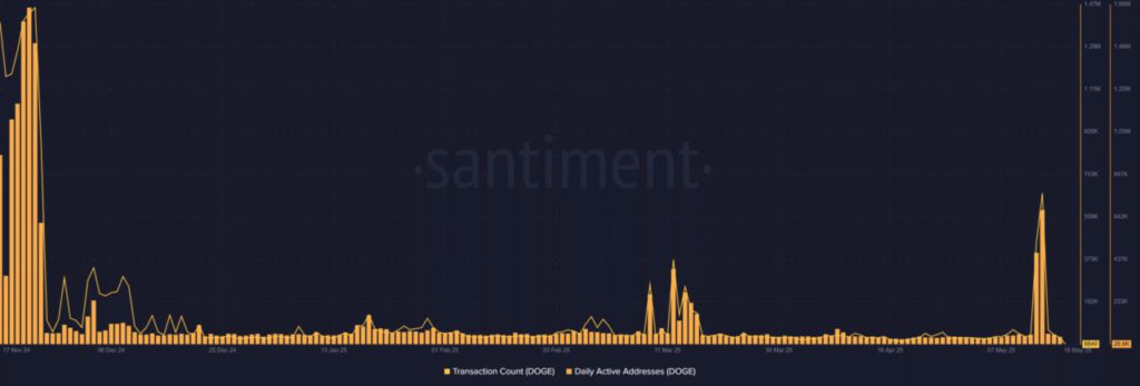 Meskipun ada kekhawatiran tentang volatilitas, aktivitas jaringan menunjukkan dinamika yang beragam. Alamat aktif harian sempat melonjak menjadi lebih dari 500.000 di awal Mei, namun telah turun menjadi hanya 28.600. Demikian pula, jumlah transaksi juga menurun dari puncak bulanan menjadi hanya 8.800 transaksi.