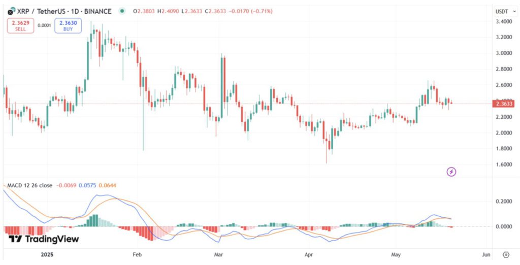 Pada 20 Mei 2025, XRP diperdagangkan di kisaran $2,37, naik lebih dari 3% dalam 24 jam terakhir.