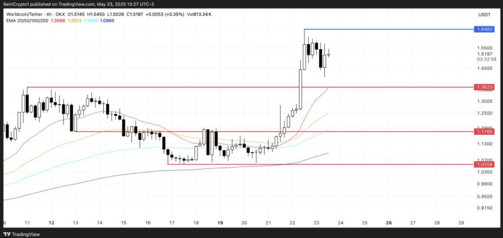 Hal ini menunjukkan adanya kekuatan beli yang sedang meningkat, yang memperbesar kemungkinan WLD akan menguji level resistensi di $1,64. Jika level ini berhasil ditembus, WLD bisa melampaui $1,70 untuk pertama kalinya sejak akhir Januari.