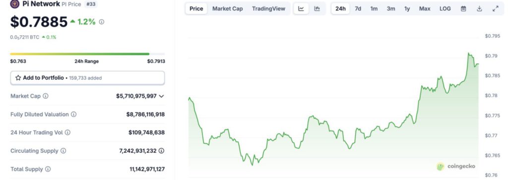 Selama periode 24 jam terakhir, harga PI bergerak dalam kisaran $0,763 hingga $0,7913, menunjukkan volatilitas moderat namun dengan kecenderungan menguat secara bertahap.