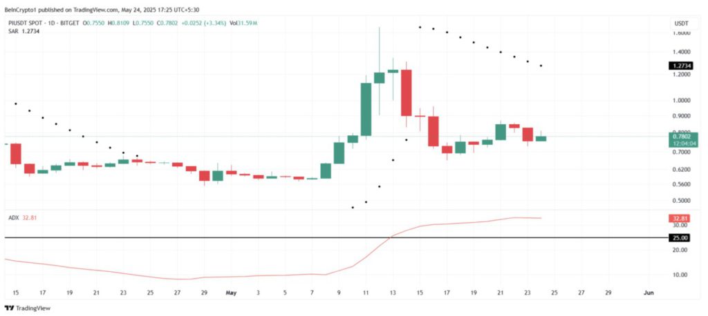 Dilansir dari BeInCrypto (24/5), Indeks Rata-Rata Arah (Average Directional Index/ADX) saat ini berada di angka 32, yang berarti melebihi ambang batas 25. Angka ini menunjukkan bahwa tren yang sedang berlangsung semakin menguat.