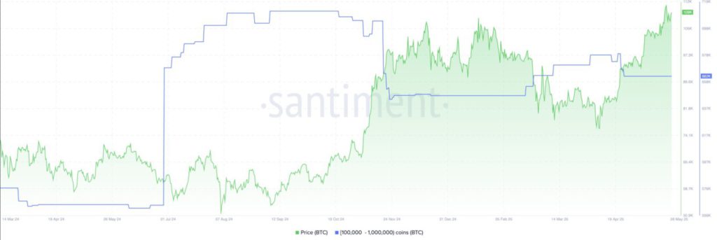 Data blockchain dari Santiment menunjukkan bahwa whale — investor besar yang memegang antara 100.000 hingga 1 juta BTC — mulai menjual kepemilikan mereka.