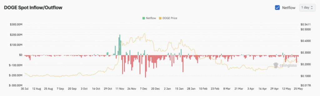 Hingga saat artikel ini ditulis, para trader tercatat baru saja membeli DOGE senilai $16,91 juta, sebagaimana ditunjukkan oleh data Exchange Netflow.