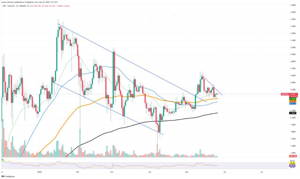 Lonjakan ini terjadi meskipun pasar altcoin secara umum menunjukkan kelemahan dan belum mampu keluar dari kisaran harga yang telah berlangsung beberapa minggu. Saat ini, Ripple (XRP) diperdagangkan sedikit di atas Exponential Moving Average (EMA) 100-harinya, yaitu sekitar $2,29, yang secara historis telah menjadi zona dukungan yang handal.