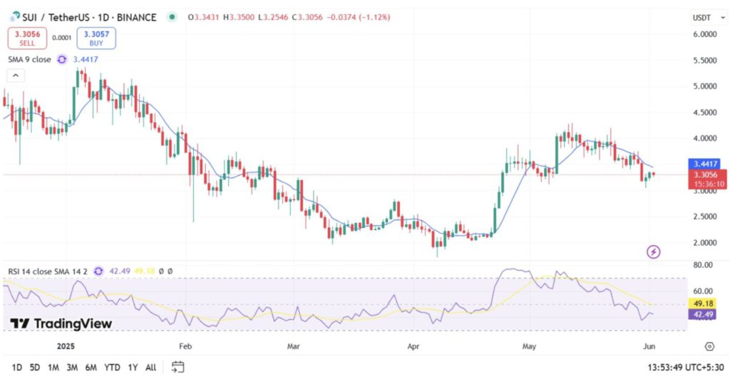 Meskipun mengalami koreksi kecil, Sui tetap menunjukkan ketahanan secara teknikal dengan berhasil bertahan di atas level support penting di $2,95.