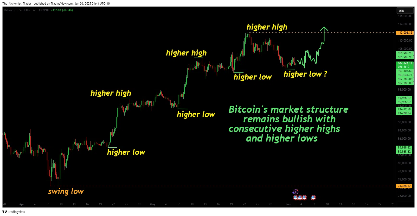 Selama Bitcoin (BTC) bertahan di atas $104.300 dan tetap di atas rata-rata pergerakan 200 hari, struktur pasar bullish tetap utuh. Pengambilan kembali kanal diikuti dengan pemecahan resistensi garis tren akan mengonfirmasi fase bullish berikutnya.