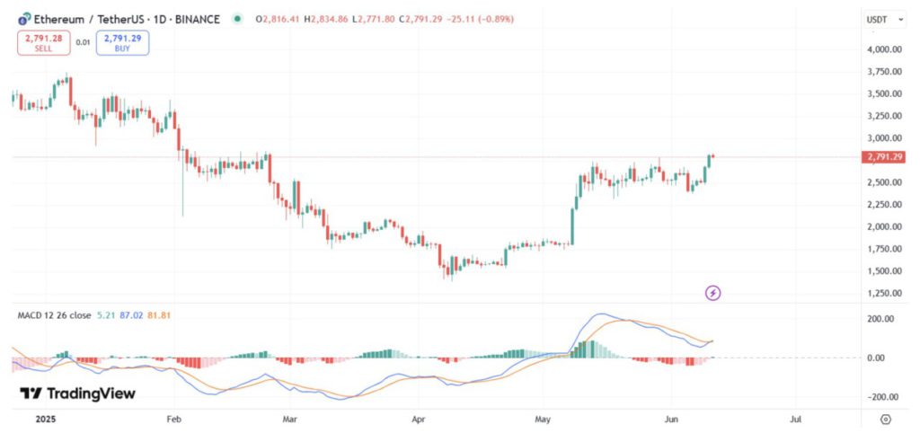 Jakarta, Pintu News – Ethereum telah berhasil keluar dari fase konsolidasi yang berlangsung selama sebulan, dan secara berkelanjutan berhasil ditutup di atas level resistance penting $2.700 pada 11 Juni 2025 kemarin.