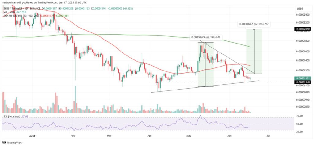 Harga Shiba Inu (SHIB) berpotensi naik hingga 62% setelah terbentuknya pola segitiga simetris yang bersifat bullish. Pola ini menunjukkan bahwa harga sedang dalam fase konsolidasi yang semakin menyempit dan kemungkinan akan mengalami breakout ke salah satu arah.