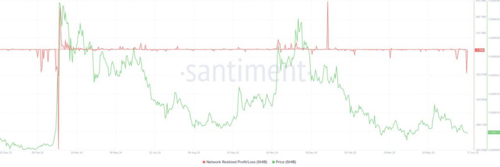 Indikator Network Realized Profit/Loss (NPL) dari Santiment menunjukkan bahwa banyak pemegang SHIB yang tidak tahan menghadapi penurunan harga—sering disebut sebagai “tangan lemah”—telah menjual token mereka.