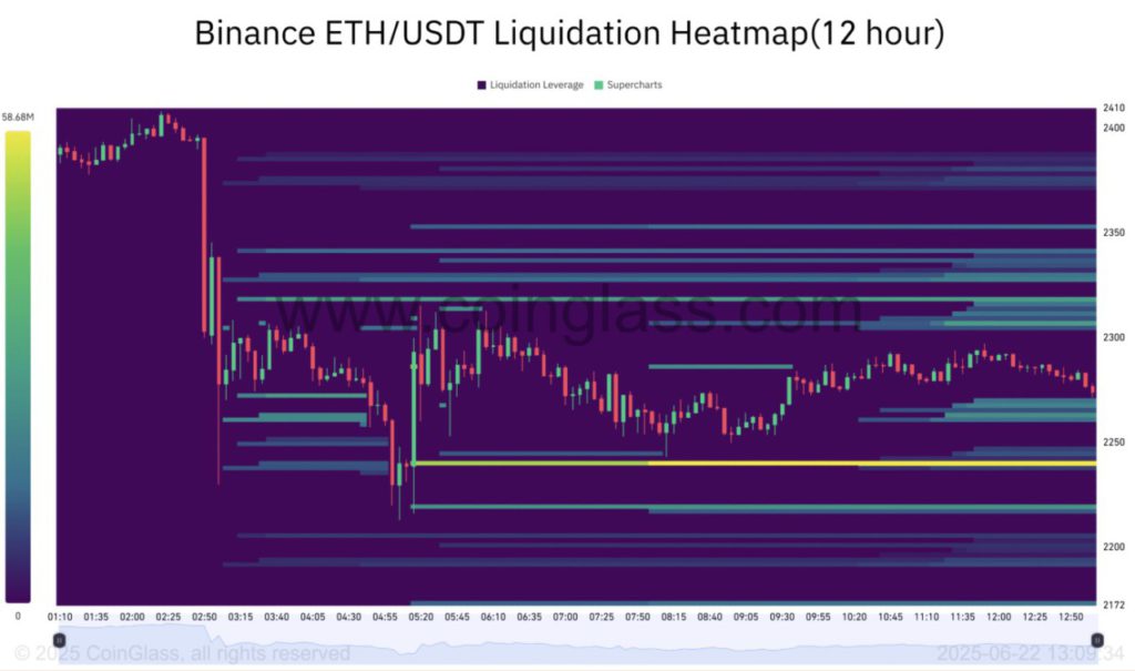 Data positioning sudah mencerminkan tekanan bearish. Tercatat adanya klaster likuiditas long sebesar $58,69 juta di sekitar level $2.239—menandakan bahwa para trader secara agresif mengambil posisi short.