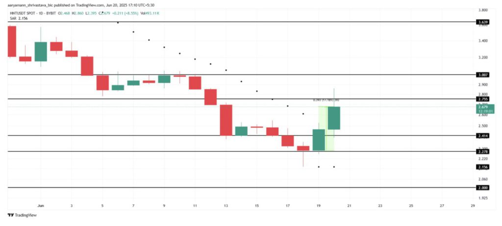 Helium telah beralih dari tren bearish ke bullish untuk pertama kalinya sejak awal bulan ini. Altcoin tersebut naik sebesar 17% dan diperdagangkan di angka $2,67 pada 20 Juni. Ini menandai perubahan momentum yang signifikan, dengan HNT diperkirakan akan melanjutkan pergerakan harga positif dalam waktu dekat.