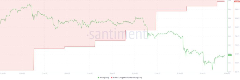 Selain itu, indikator MVRV Long/Short Difference tetap negatif dan telah berada dalam kondisi ini selama empat bulan terakhir, menandakan bahwa investor jangka panjang Ethereum masih belum meraih keuntungan.