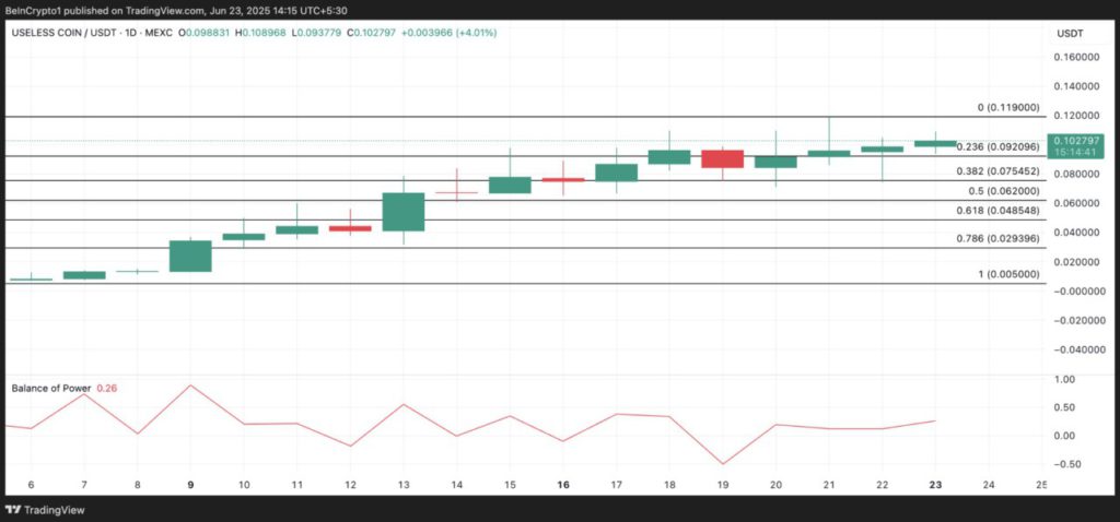 USELESS berhasil menghindari penurunan pasar secara umum dalam beberapa minggu terakhir dan mencapai titik tertinggi sepanjang masa (all-time high) di $0,119 pada 21 Juni.